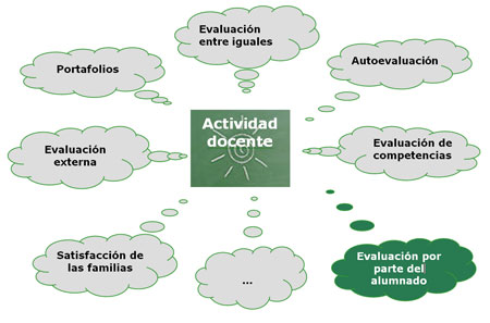 En este sentido, la evaluación de la actividad docente, poco a poco, va rompiendo con la imagen del docente como ente individual y cada vez más, se apuesta por una metodología que favorezca las relaciones entre el mismo estamento (departamento, claustro...), pero también con otros miembros de la comunidad educativa (familias, alumnado...).