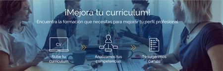 ¿Buscas trabajo pero crees que a tu currículum le falta algo? ¿Quieres realizar un curso pero no estás seguro/a de cuál es el más indicado para ti? Educaweb ha diseñado una aplicación que te ayudará a encontrar la formación continua más adecuada para desarrollar tus competencias profesionales.¿Cómo funciona? Sube tu currículum a nuestra página, Educaweb lo analiza para detectar tus competencias y te ofrece cursos para mejorarlas. De esta forma, podrás aprovechar al máximo tu potencial para encontrar empleo, accediendo a los cursos que mejoran y completan tu perfil.