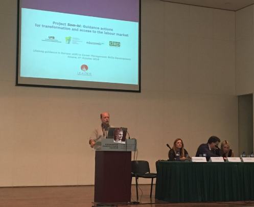 Miembros del equipo de DEP Institut y Educaweb han asistido a un nuevo encuentro del proyecto LEADER, una iniciativa cofinanciada a través del Programa Erasmus+ de la Unión Europea para definir y consensuar un modelo de gestión de las competencias profesionales (CMS) y desarrollar fuentes de formación para los orientadores profesionales.La jornada, celebrada en Atenas el pasado 4 de octubre, ha versado sobre ‘La orientación a lo largo de la vida en Europa: el cambio hacia el desarrollo de las competencias para la gestión de la carrera profesional' (Lifelong guidance in Europe: The shift to Career Management Skills Development).