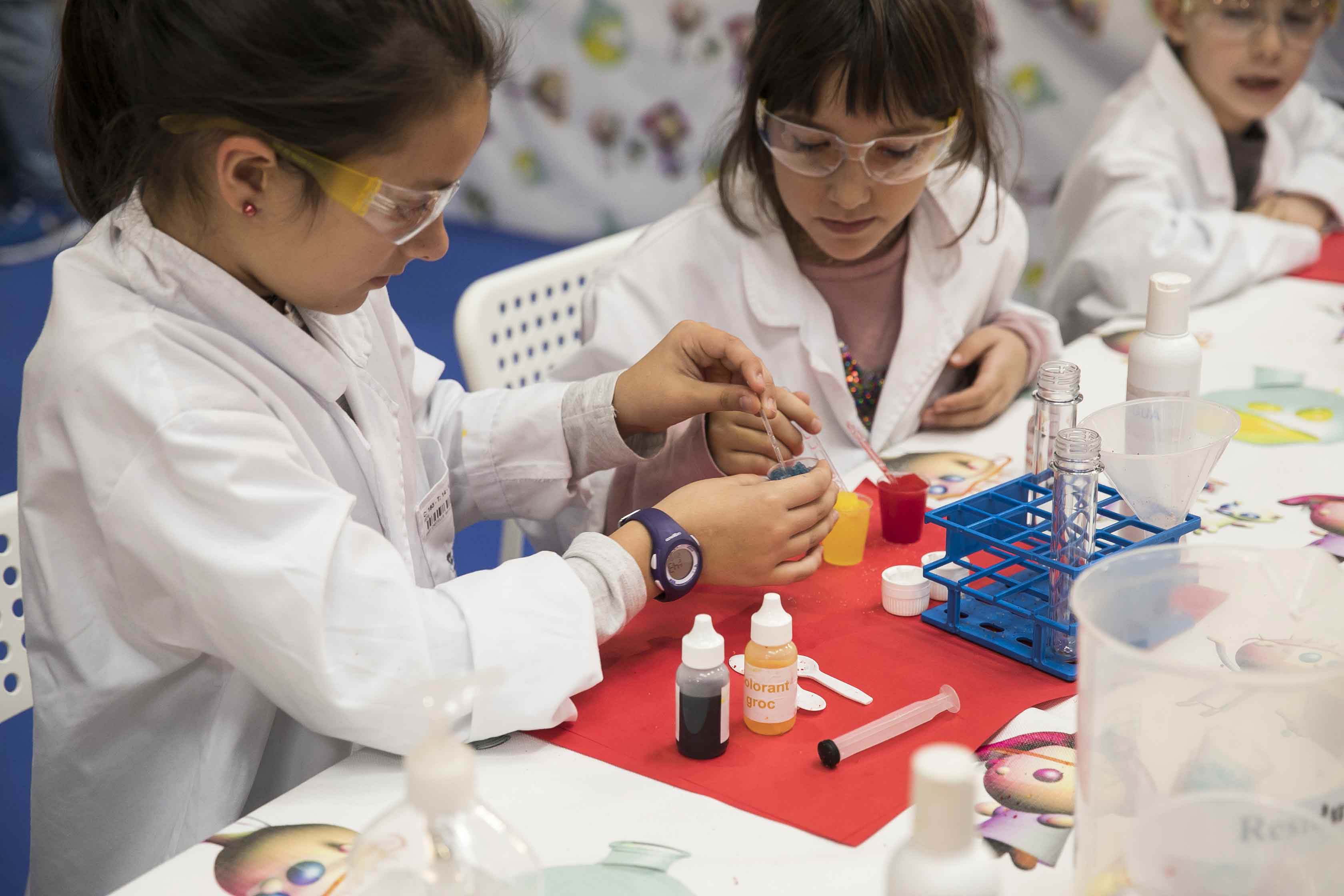 Niñas jugando a ser técnicas de laboratorio en la pasada edición de la Ciutat dels Somnis