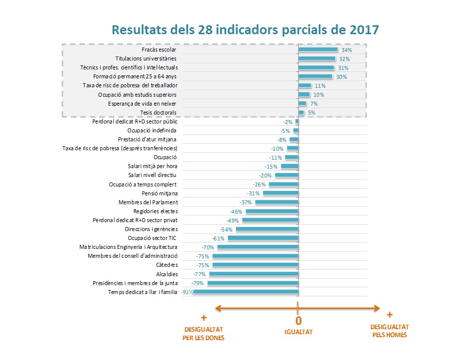 Indicadores de igualdad de género de Catalunya, elaborados por el Observatori Dona, Empresa i Economía (ODDE) de la Cambra de Comerç de Barcelona. Imagen: Anna Mercadé / ODDE