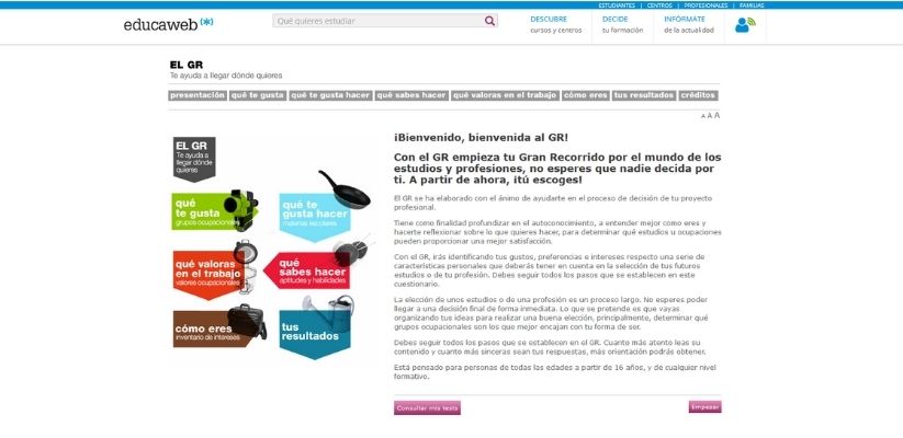 El segundo contenido más visto ha sido el test del Gran Recorrido (GR) de Educaweb, una herramienta para personas mayores de 16 años que ayuda a profundizar en el autoconocimiento y a reflexionar sobre los intereses académicos y profesionales, las aptitudes, para determinar qué estudios u ocupaciones pueden proporcionar una mayor satisfacción personal.